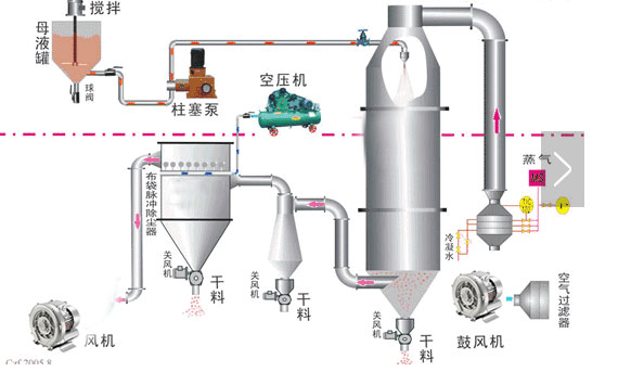 當高壓風機以這樣的形式運用于烘干設備中的時候,不僅兼顧了負壓操作的優(yōu)點,又避免了由于大的負壓操作,使空氣漏入系統(tǒng)中,選成干燥效率降低的缺點,同時,微負壓操作又可保證粉塵回收裝置具有最高的回收率。